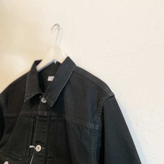 size 44-着丈 56.5cm/身幅 62.5cm/肩幅 49.5cm/袖丈 59cm size 46-着丈 58.5cm/身幅 64.5cm/肩幅 50.5cm/袖丈 60cm size 48-着丈 60.5cm/身幅 66.5cm/肩幅 52cm/袖丈 61cm COTTON 100% Made in JAPAN ファーストシーズンからつくり続けている、〈FOUNDOUR〉の1stタイプのデニムジャケット。王道ブランドのデザインを軸にしながら、同年代に存在したふたつのストアブランドのディテールをミックスした、どこか力の抜けたハイブリッドな一着です。 着丈はオリジナルより短く、アームは太め。裾のぎりぎりに配したシンチバックや、本来とは逆側につけた胸ポケットなど、完璧すぎないバランスが羽織ったときの愛嬌につながっています。 今シーズンは90年代のブラックデニムをイメージし、ややウォッシュのかかった13ozのデニムを採用。王道的な素材を使うことで、デザインの持つポテンシャルが素直に引き出され、気負わず着られる雰囲気に仕上がりました。また、ジャストサイズで着ても、オーバーサイズで着ても、バランスよく着られるのは完成されたパターンによるものです。 程よく柔らかく、最初から身体に馴染むため、デニムジャケット特有の“硬さ”が苦手な方にもおすすめです。Tシャツの上にラフに羽織っても、ニットやシャツと重ねてもバランスが取りやすく、コーディネートを考えすぎなくていいのも魅力。共地の5ポケットのパンツやトラウザーと合わせれば、セットアップとしても楽しめます。 クラシックを土台にしながら、いまのワードローブに自然と収まる1stタイプのデニムジャケットです。