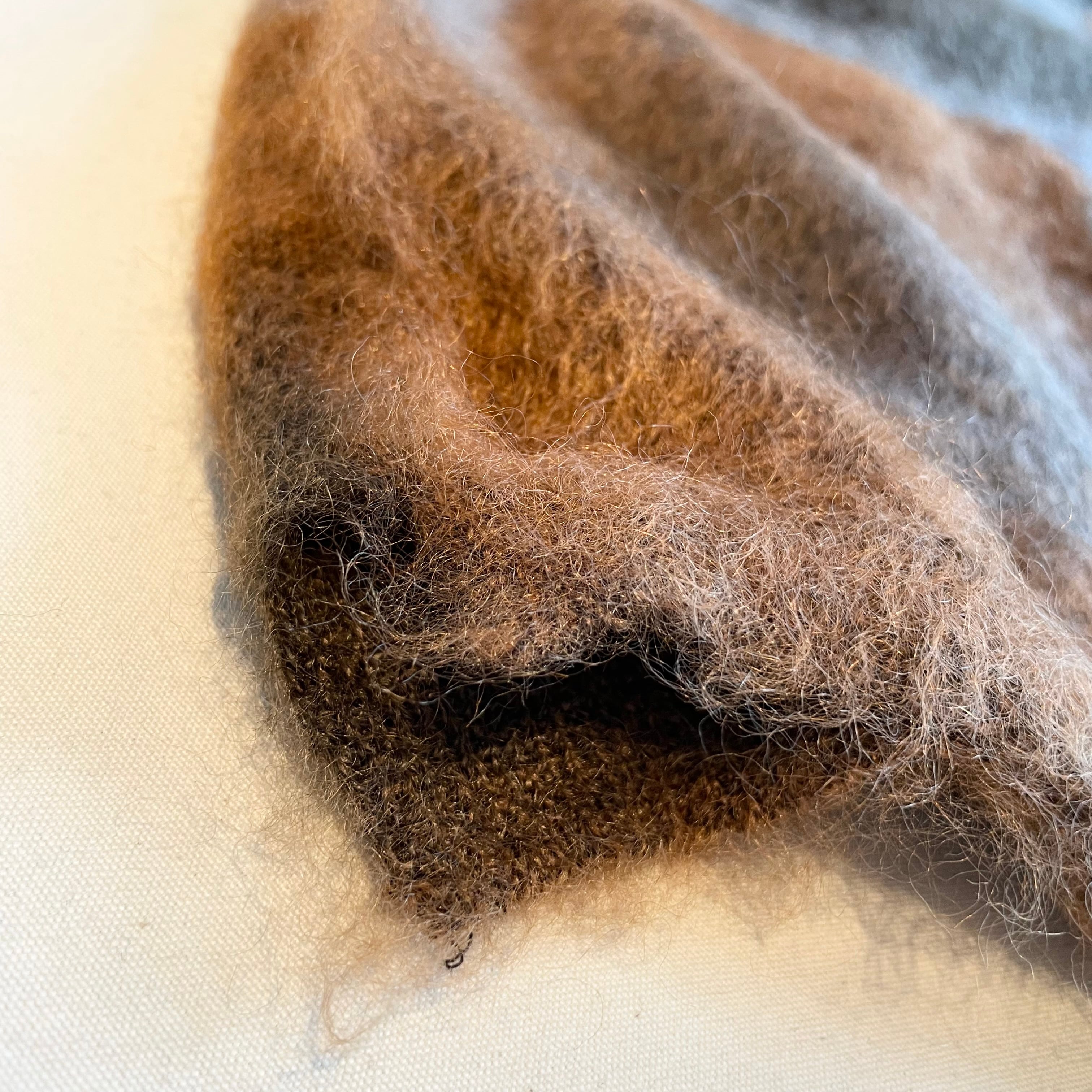 仕上げとして、起毛加工職人に1点ずつ加工を施して頂く事で、色の境目がまるで水彩画のようににじんで見える仕上がりになりました。
