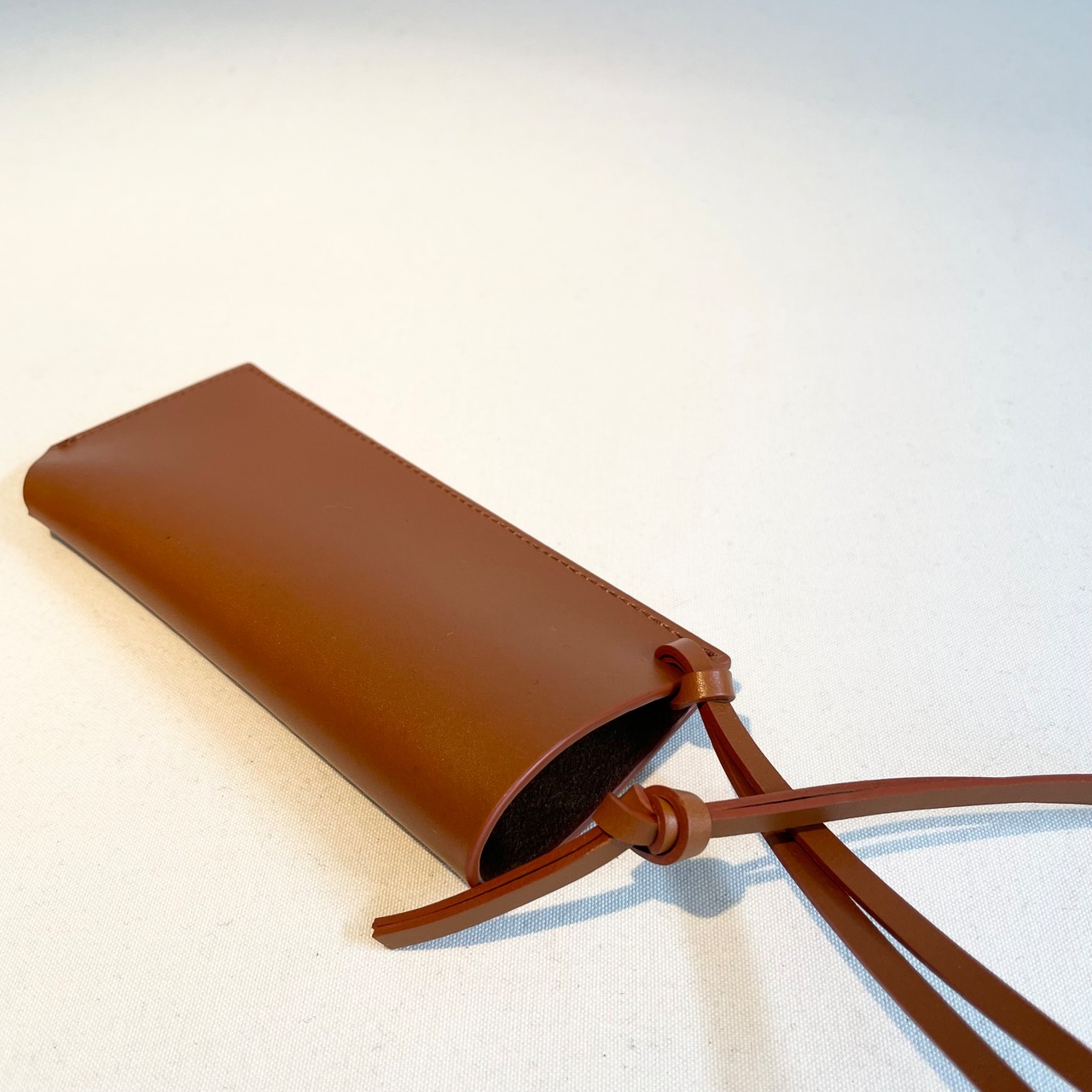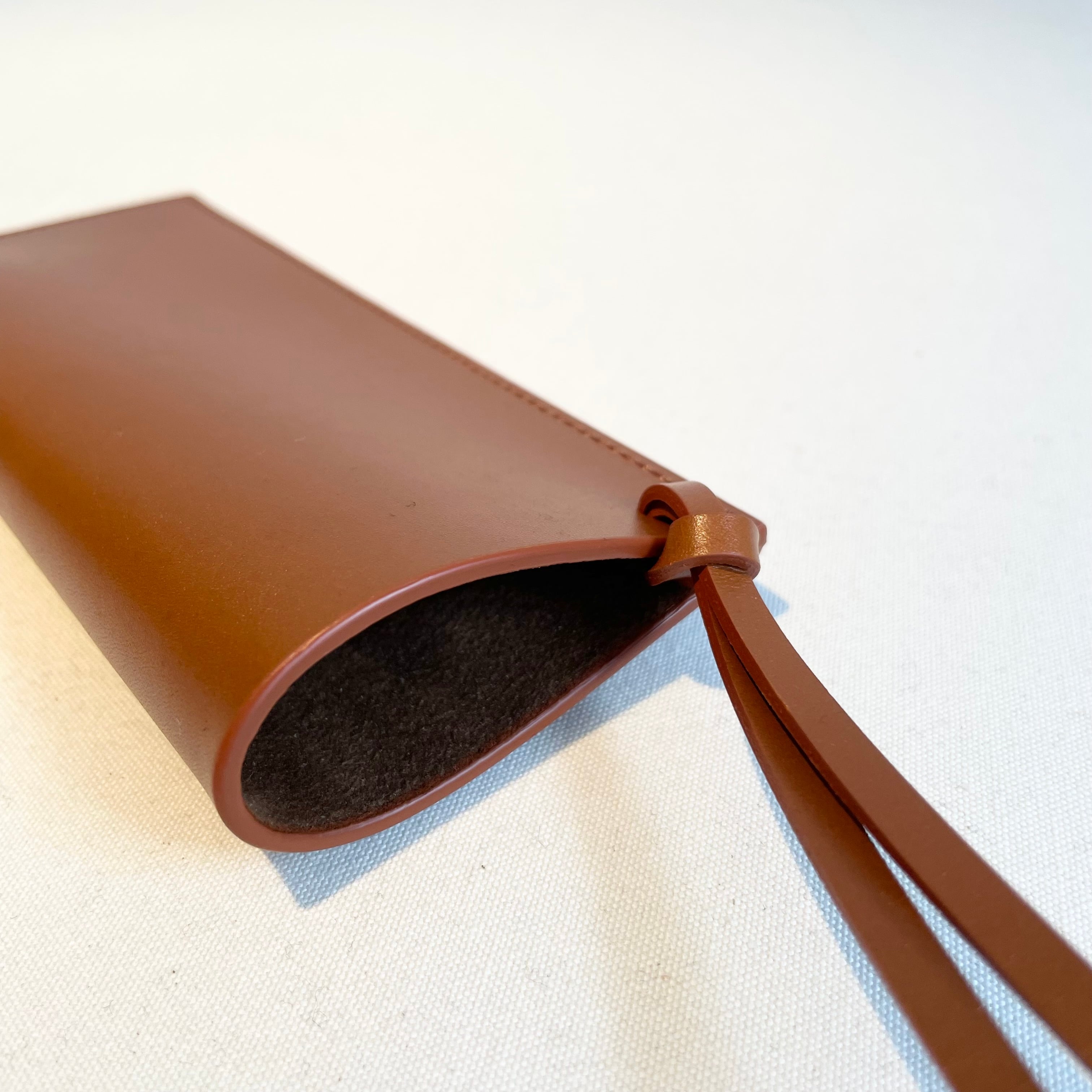 厳選された高品質なタンナーから仕入れたボックスカーフを使用し、裏地にはレンズを傷つけないよう東レのウルトラスエードを採用したサングラスケースです。