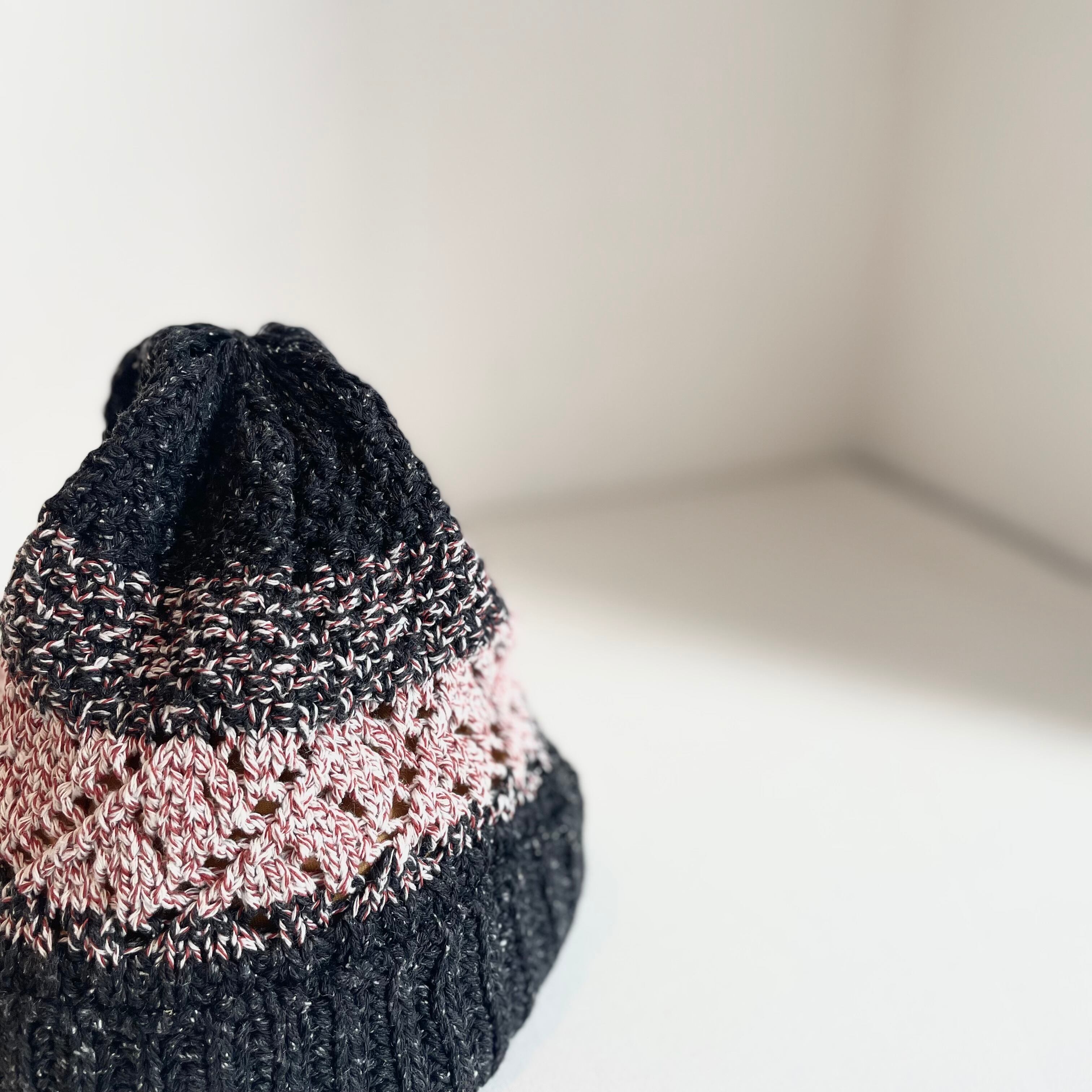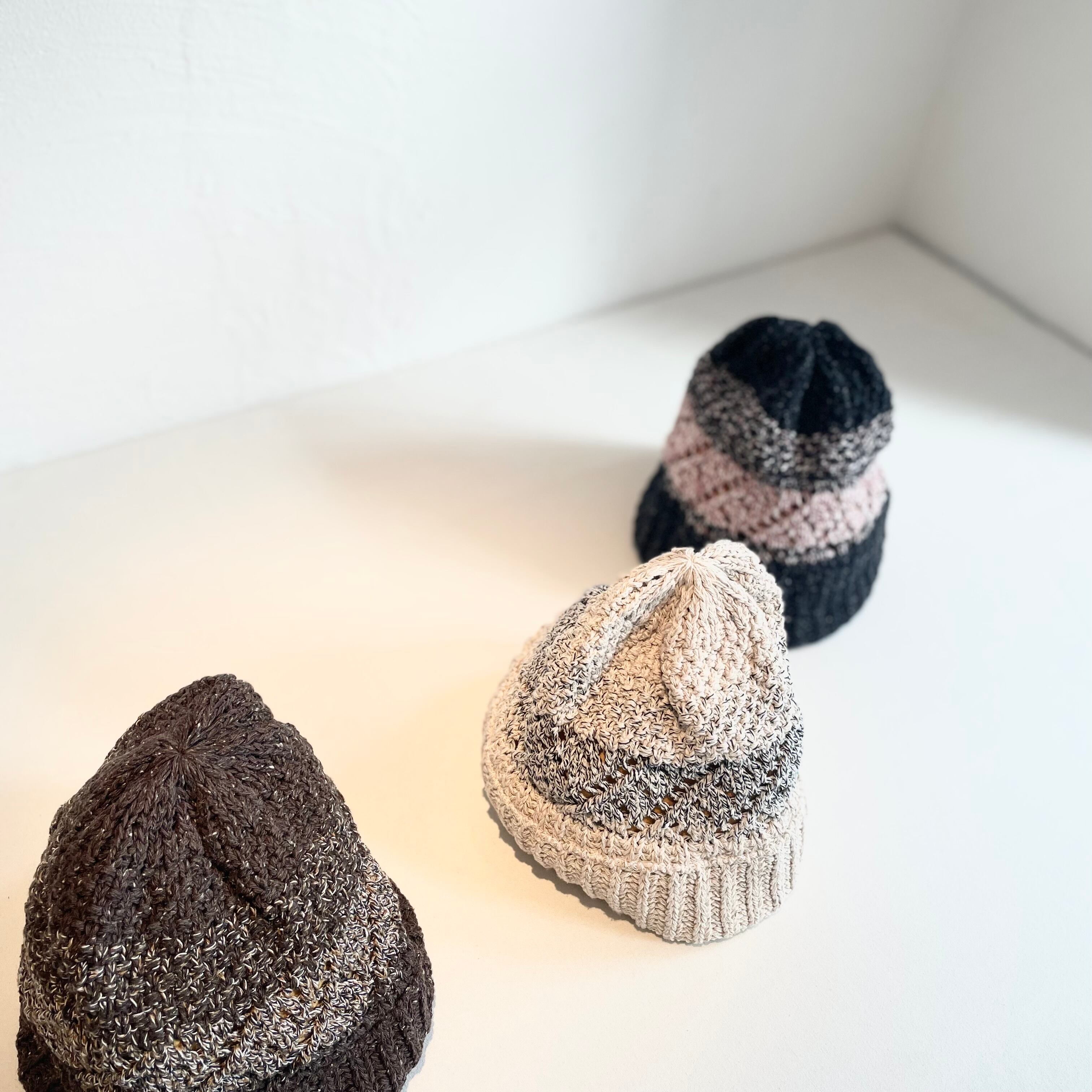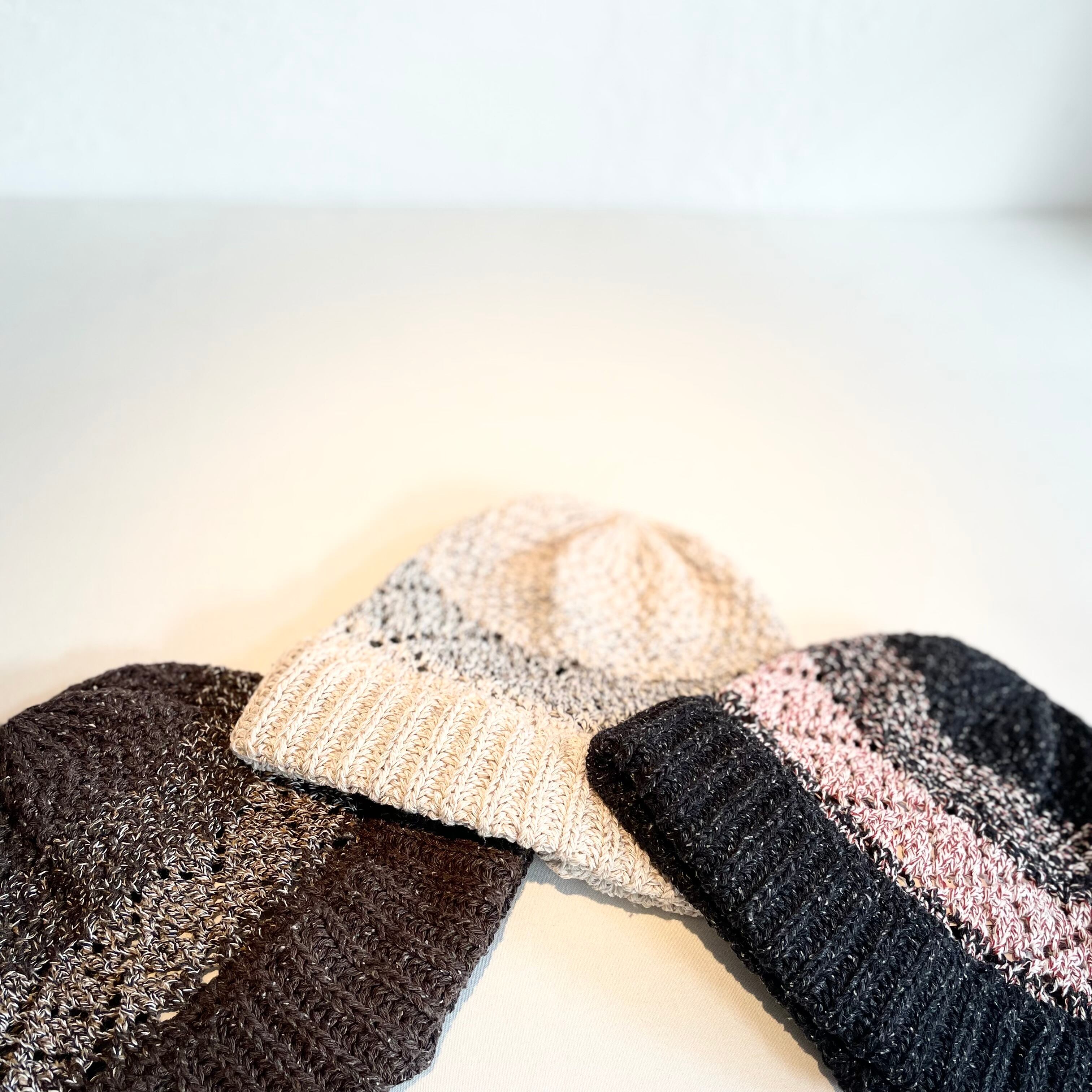 表情豊かなシルクと、特殊加工を施したコットンを撚り合わせ編み立てしたニットハット。