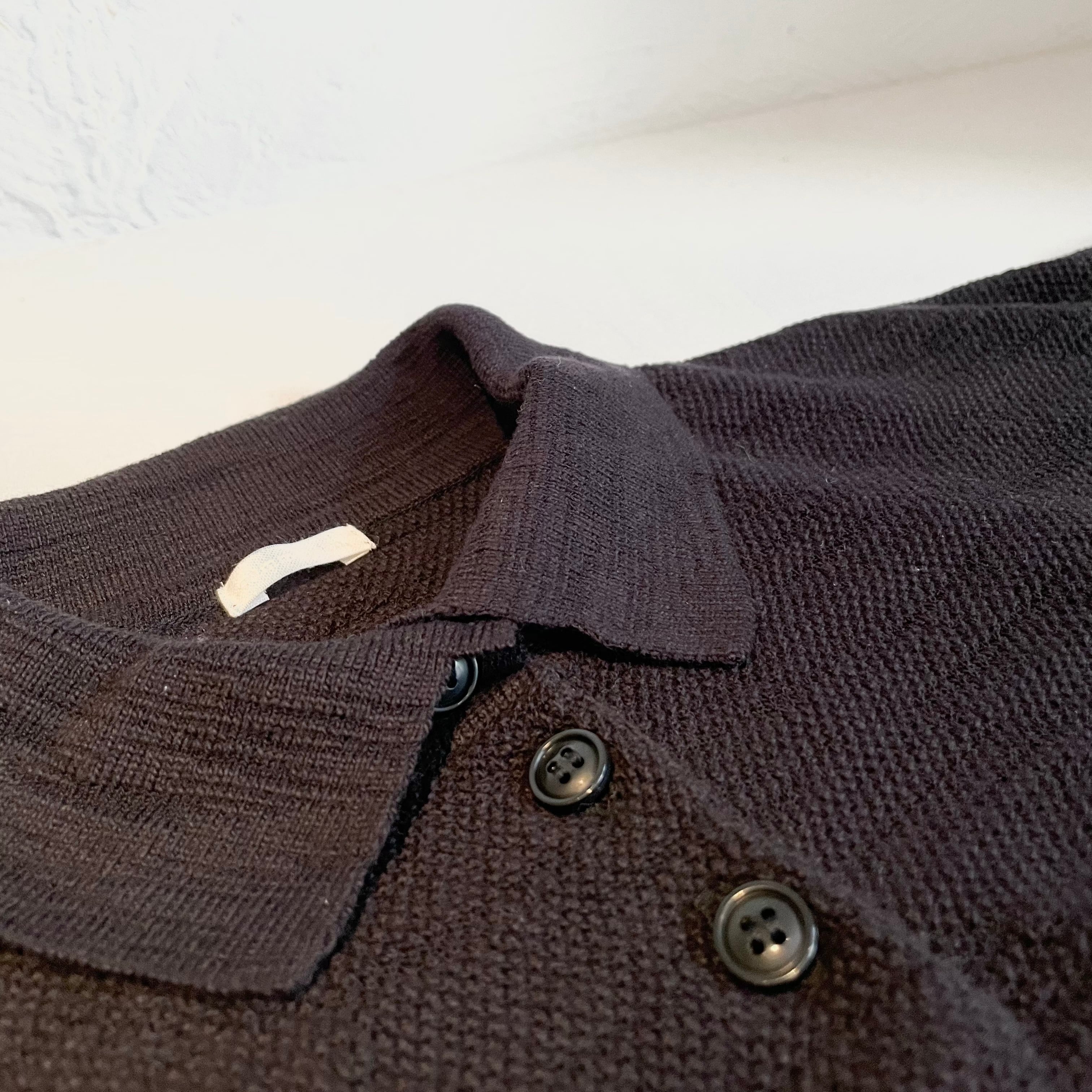 古着にもありそうな少し懐かしい印象を与える、インパクトのあるニットポロに仕上がっております。