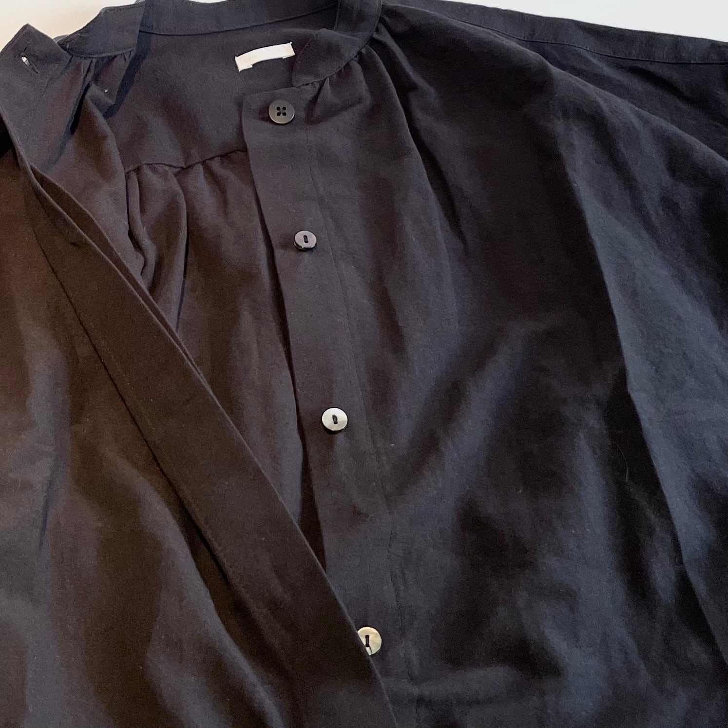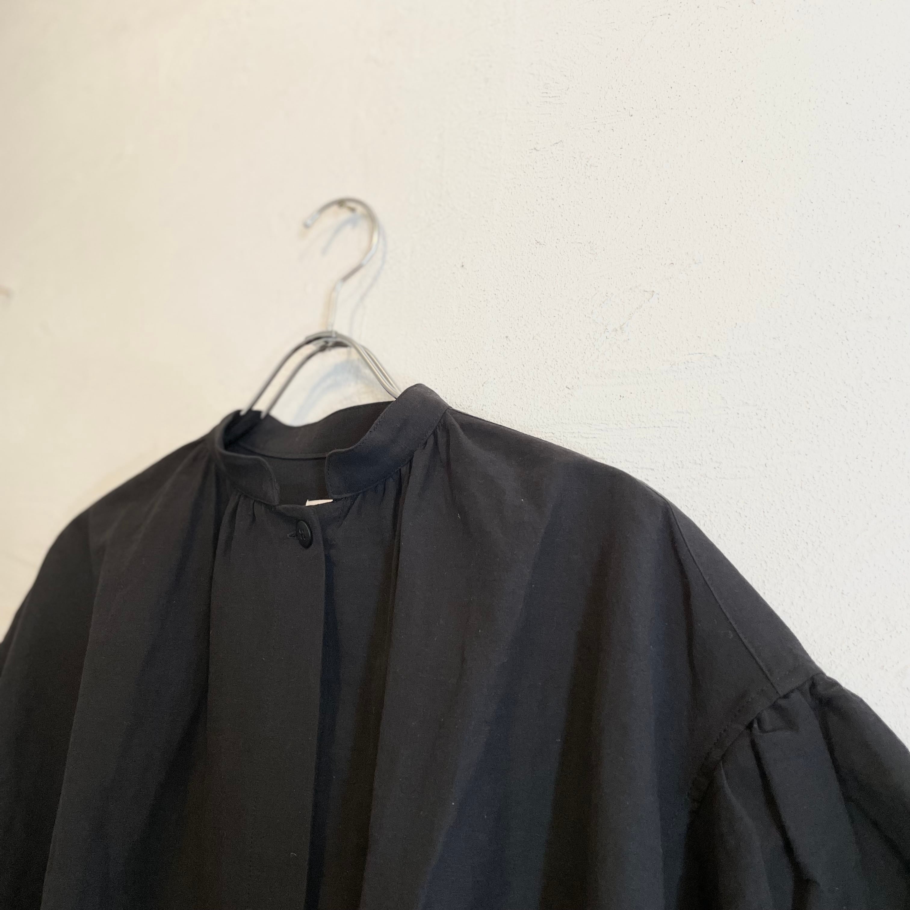 その生地を使用し、たっぷりとしたシルエットのブラウスはシンプルでありながらも存在感のあるシャツアイテムです。