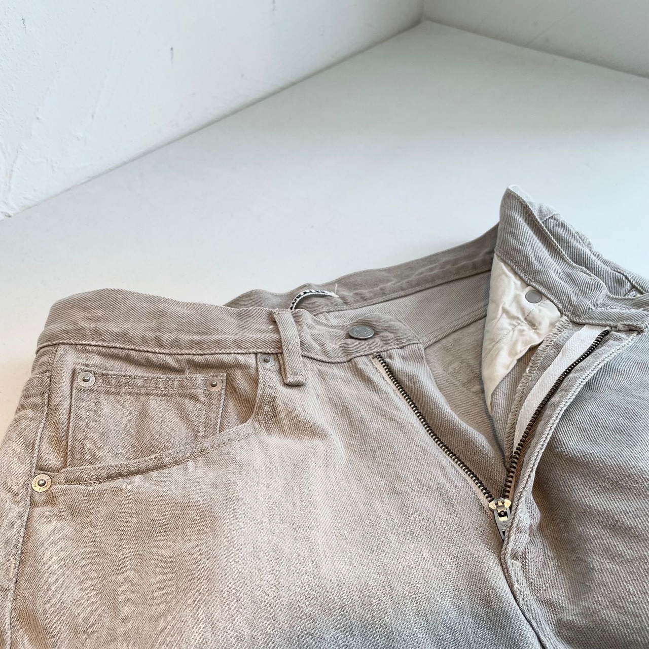 何度洗い込んでも生デニムのようなパリッとした風合いを保てるように開発したAURALEE定番のデニム素材です。