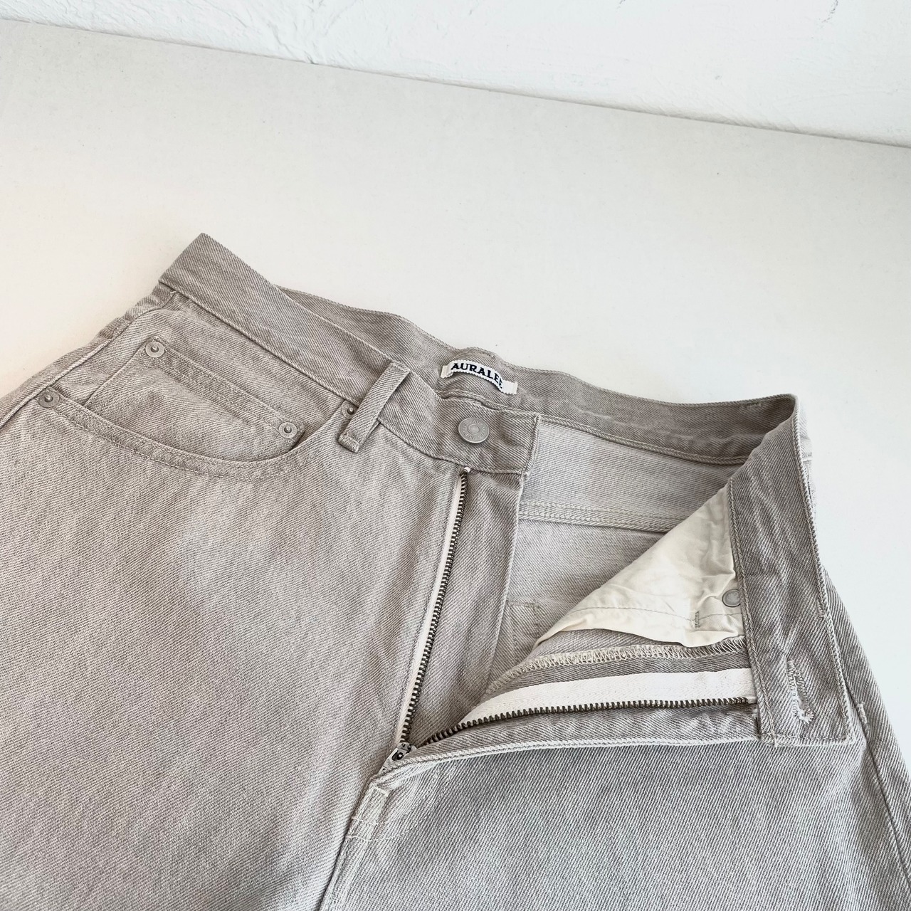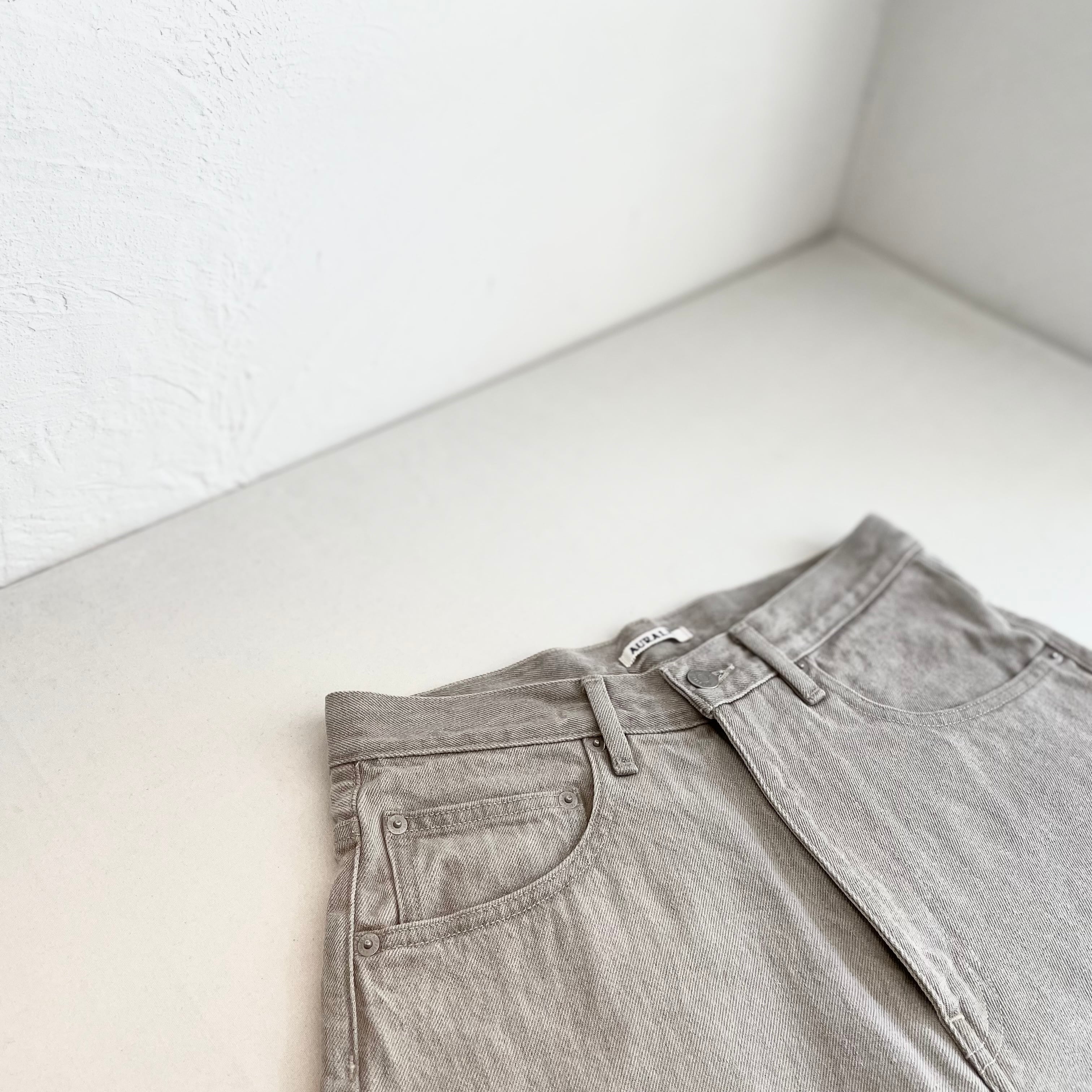 何度洗い込んでも生デニムのようなパリッとした風合いを保てるように開発したAURALEE定番のデニム素材です。